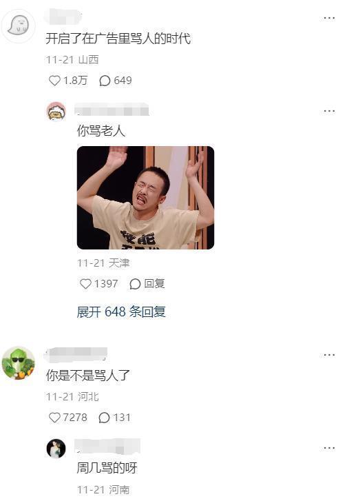 这些品牌商务更倾向于选择更出圈、更热门的选手做好玩、出圈的品牌营销,而非单纯的“带货”。 “外星从”拥有着这届喜人最多的商务,除了本就属于综艺内商务的美团、安慕希、问界等,华为、京东、瑞幸、伊利、舒肤佳也向“外星从”的张兴朝和李嘉诚伸出了橄榄枝。 相对于代言人、大使等长期Title,喜人们的商务通常是短期的推广。 品牌看中的通常节目播出期演员们自带的热度,另一方面产品广告也能够和大热的节目梗联动,从而在社交媒体上形成传播。这种传播通常也更容易在《喜人》观众中形成讨论。 例如张兴朝的腾讯地图、伊利等商务合作,就会放大“牛爷爷”这个梗,用节目出圈的热梗改编或者串联广告内容。广告视频的评论区,观众也会自发加入玩梗:“好刻板的广告”“你是不是骂人了?”“牛爷爷还真代言上牛奶了?”