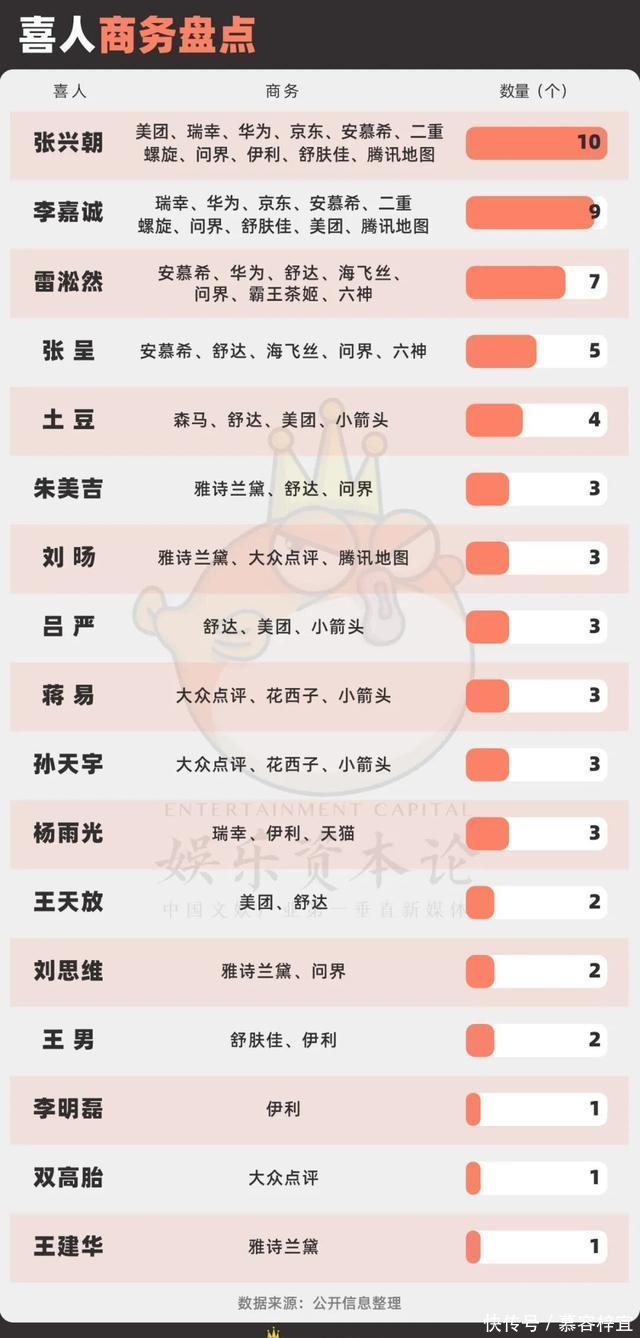大热CP之外的喜人们,商务接不停 在“美帝们”的杂志之外,更多喜人接到了各个品牌的商务推广。相比起杂志这种需要直接拉动粉丝销量的产品,和喜人合作的品牌,遍布餐饮、洗浴、家居、美妆、电子等品类,通常是认知度高的国民品牌。