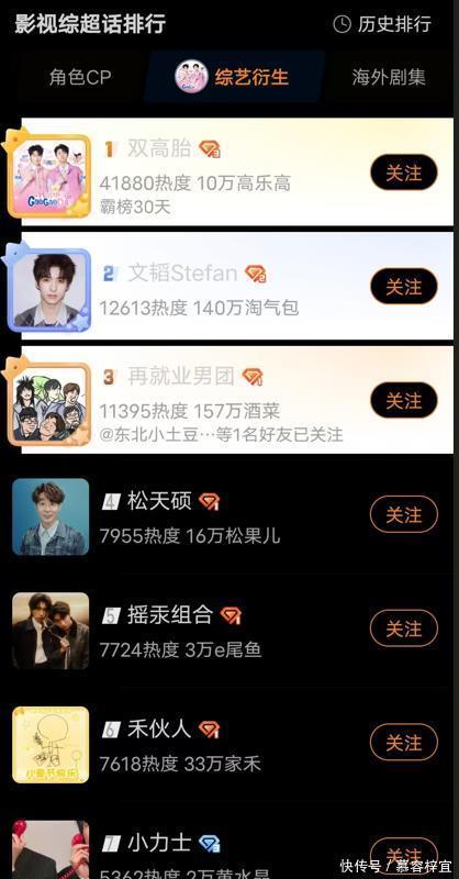 “小力士”从上一季陪跑到这一季成为TOP1,也是今年节目的黑马选手。他们杂志的数量仅次于“摇汞青年”两人。截至目前,他们登上了《精品购物指南》,也和“摇汞青年”、“外星从”一起登上了《anotherman》,再加上双高胎,四个组合共同登上了《cosmo》的12月刊。 雷淞然还拿到了《loading》的单人杂志。《精品购物指南》仅发布了一条关于“小力士”拍摄路透的小红书帖子,就获得了超过五千的点赞。《anotherman》关于喜人的小红书帖子点赞数同样超过了五千,其他明星的帖子点赞量则在几十到几百不等。 “双高胎”也拍了双人杂志,是《men'suno》的生日刊。据粉丝统计,这本杂志在24小时之内突破了百万销售额。《ELLE》则更早地“买股”了喜人,在节目播出的前期和后期都给喜人小队拍了照片。