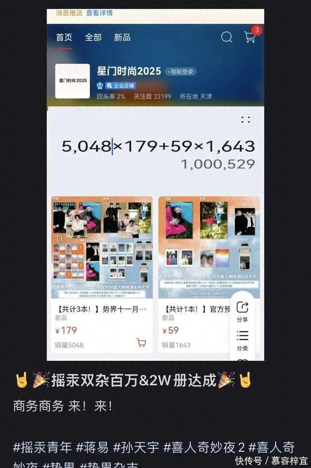 蒋易孙天宇杂志破百万,喜人粉丝不输十个勤天