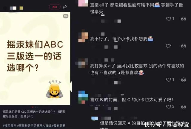 《势界》过往更青睐当红的演员如梓渝、王安宇、丞磊,爱豆如叶舒华、李艺彤,《vision视觉青年》同样请过演员田嘉瑞、爱豆陈立农。此外,行业人士如运动员覃海洋也上过相关杂志。 喜人连续地合作杂志,粉丝的拥护紧随其后。在“势界”的小红书主页中,“摇汞青年”的相关成片与拍摄动态,单条帖子的点赞数量少则五千,最热的物料视频是双人手势舞,点赞超过1.3w,这个数据在官号里热度仅次于目前大火的梓渝。 无论是前期释放的预热物料,还是杂志配置,都深谙粉丝嗑CP、买周边的心理。不同版本的杂志搭配了不同的单、双人物料,不限于双人复刻亲签的拍立得小卡,双人自拍小卡等,粉丝想要集邮就得购入多版本多份杂志。